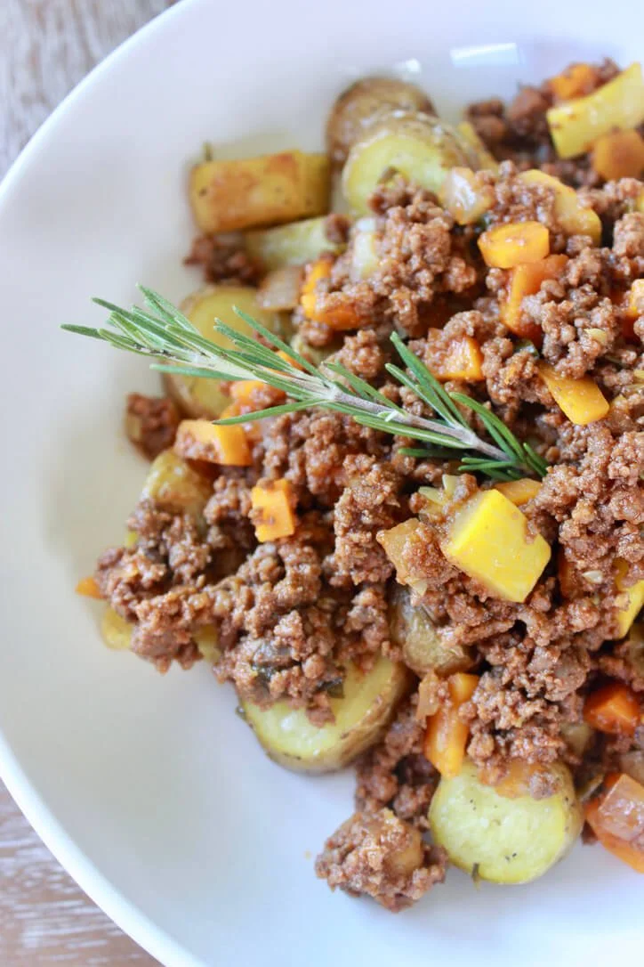Ground meat cooks quick, so you can get this on the table super quick if you just stick to protein (feel free to swap beef for ground chicken or turkey, or even beans if you’re some weird vegan), but if you can muster a few extra minutes, you can add some veggies to the mixture to get a little more fiber in the meal. I included carrots and yellow squash in mine, but you could easily swap those for peas, spinach, broccoli, cauliflower, or *shudder* eggplant. Are there other vegetables to name? Use those too! I can’t believe I’m even taking credit for this as a “recipe.” But…content is content!