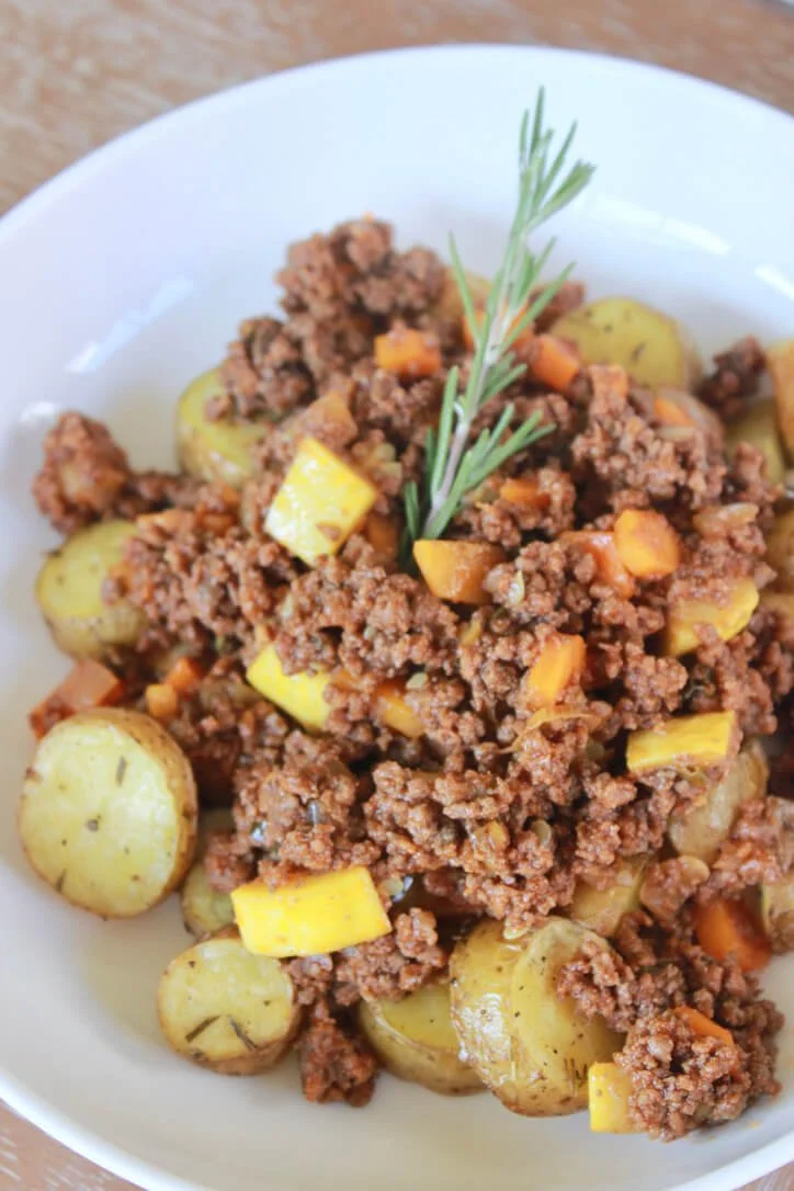 - To serve, add roasted potatoes to a bowl and top with the meat and eat hot.